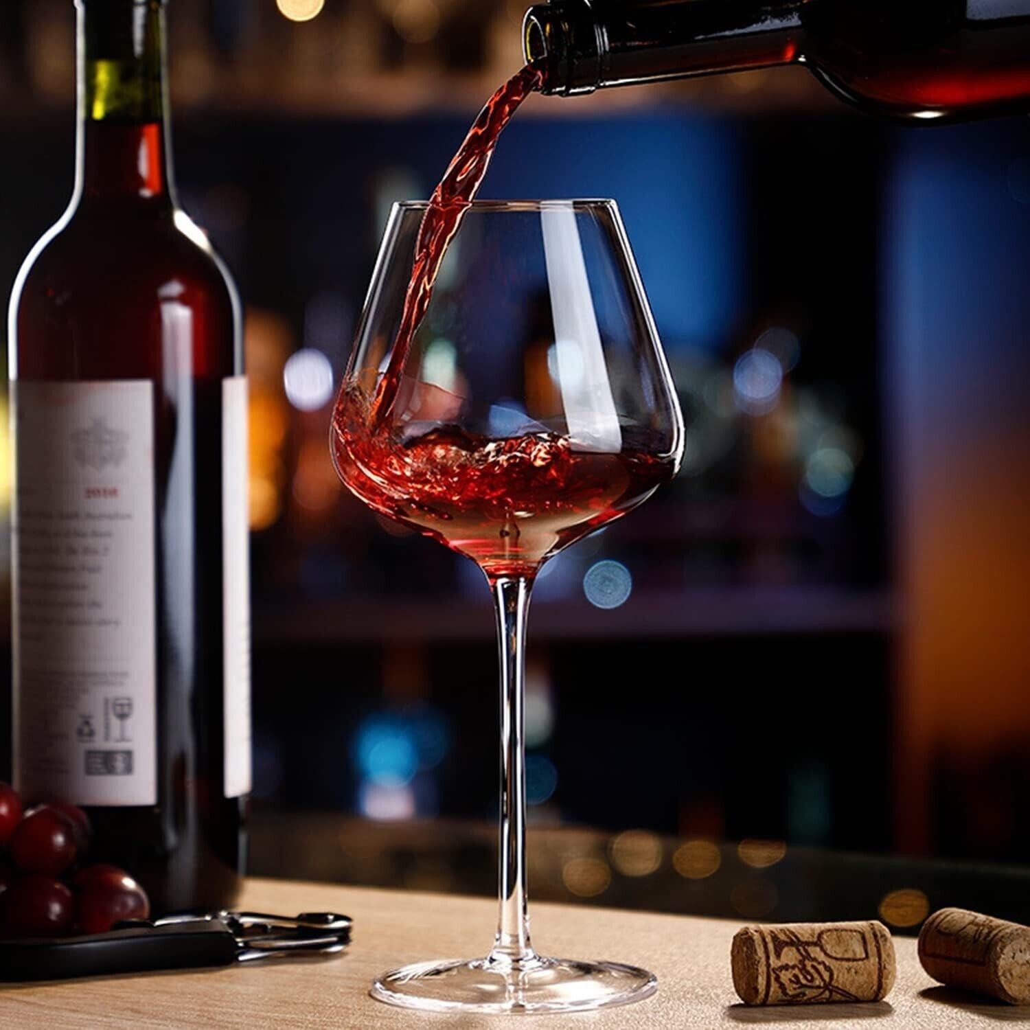 14oz Red Wine Glasses Set of 6,Clear Crystal Burgundy Glasses for Wine Tasting