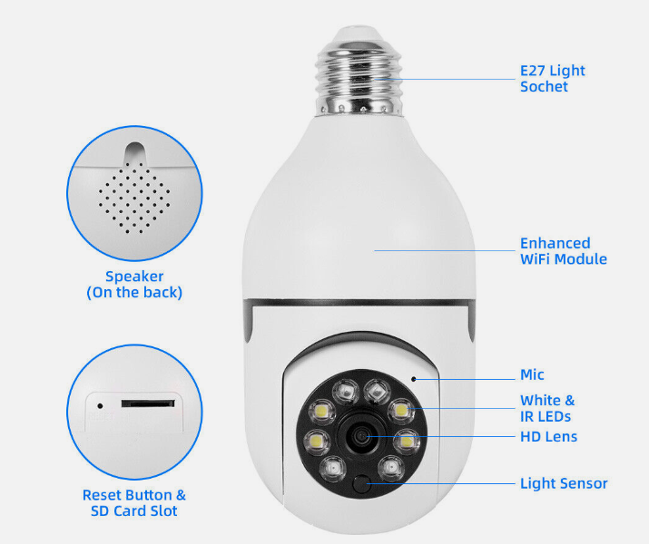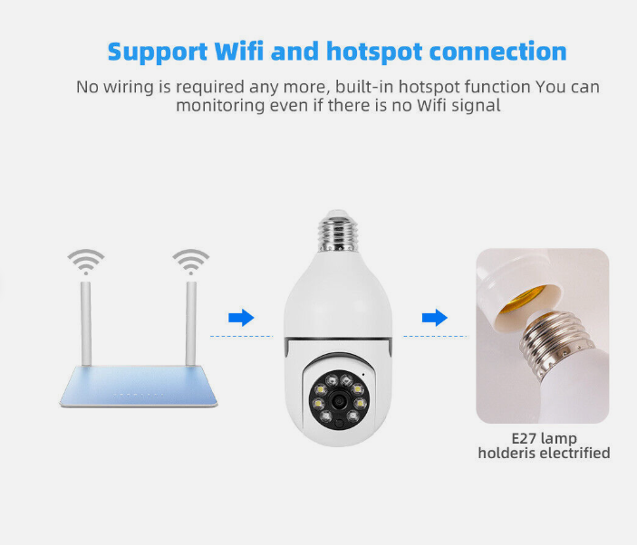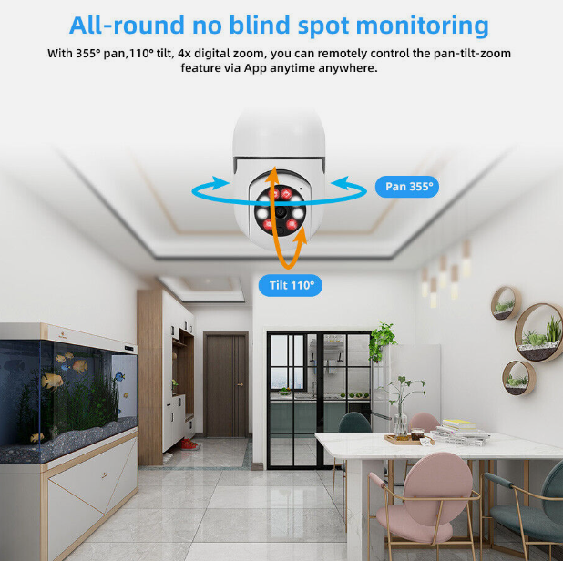 360° 1080P IP E27 Light Bulb Camera Wi-Fi IR Night Smart Home Wireless Security