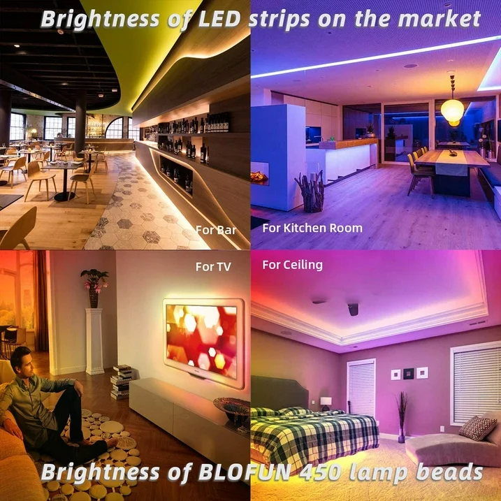 • 2023 Ultra Long 50ft/15M led light strips】- 50FT led lights strip are long enough to reach around your entire room and light up all the space.Widely applied for indoor decoration like bedroom, living room, projector screen, TVs, dorm rooms, bars and shops, under the cabinet, stairs, and etc. Three ways for selection, APP, remote control or controller, just press and get the fantastic lighting atmosphere you want.