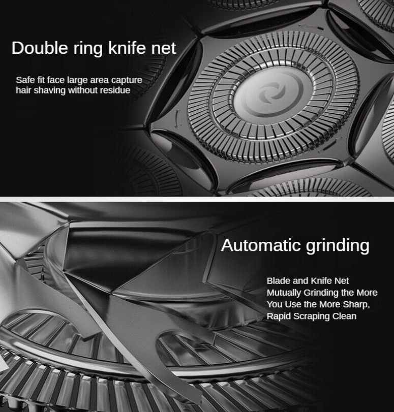 • ?【Upgraded Version of 7D Electric Shaver】This electric shaver adopts 7D floating shaving head design, which has increased contact area compared to other heads. The center has undergone a broader transformation design. The concave center blade of the razor can increase the curvature of the razor and conform to the skin contour more closely, giving you an efficient and relaxed shaving experience.