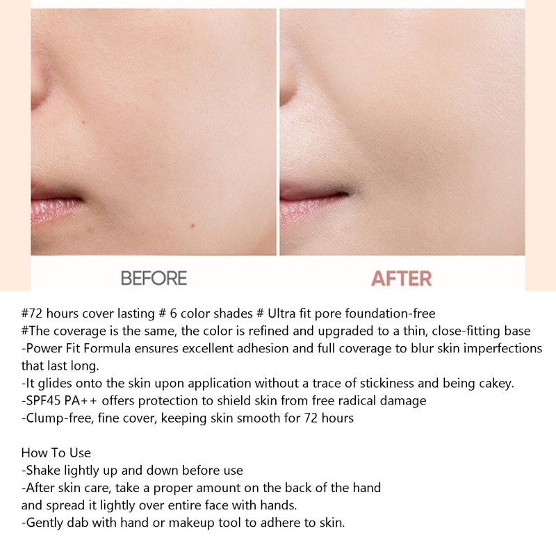 #72 hours cover lasting # 6 color shades # Ultra fit pore foundation-free