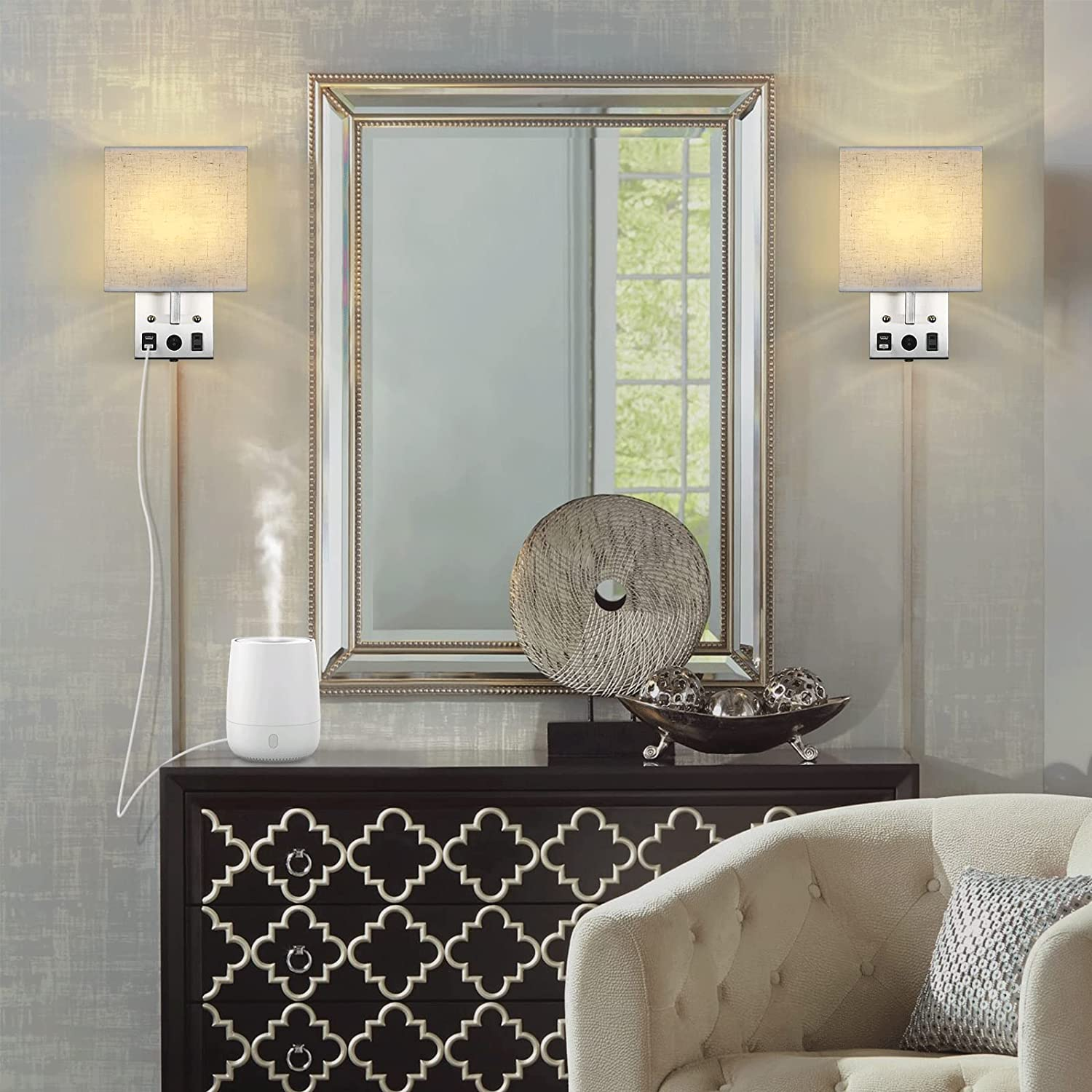 Bedside Wall Lamp Set of 2 Plug in Wall Light with Usb Charging Ports and Ac Out