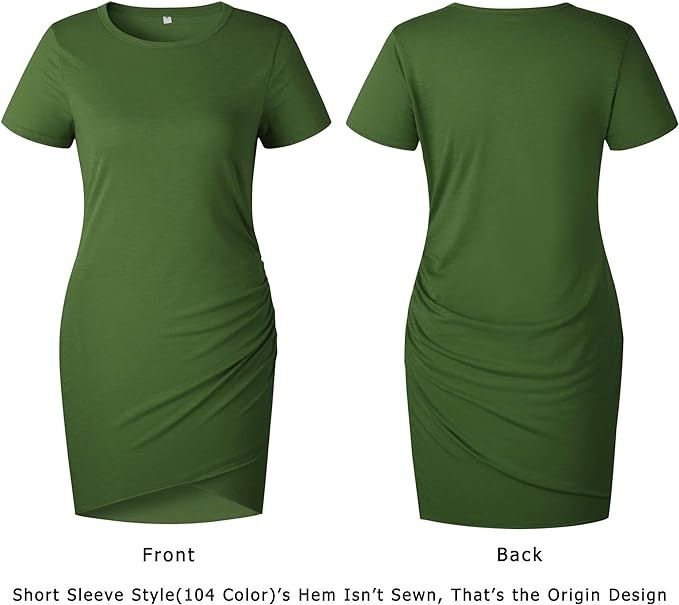 • Classic Details Such As The Feminine Round Neckline, Short Sleeves And A Bodycon Fitted Cut Flatter Your Silhouette. Side Ruched And Front Wrap Irregular Hem Set Label Accents And Rounds Off The Look Of The Women Mini Dress. Tip: Just Slip On, Enjoy The Relaxed Feeling Of Super-Soft T-Shirt Material With Stretch On The Skin And Slip On A Pair Of Sneakers, Sandals Or Heels On The Go, Done! The Versatile Dress Accompanies You Everywhere On Warm Days And Ensures Always Fine Its Way Into Your Vacation Suitcase! Must-Have!