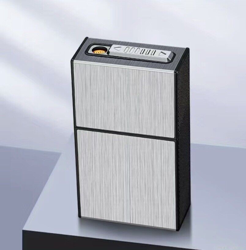 Cigarette Case with Lighters Rechargeable Windproof Flameless Portable Regular Size 100's Sli