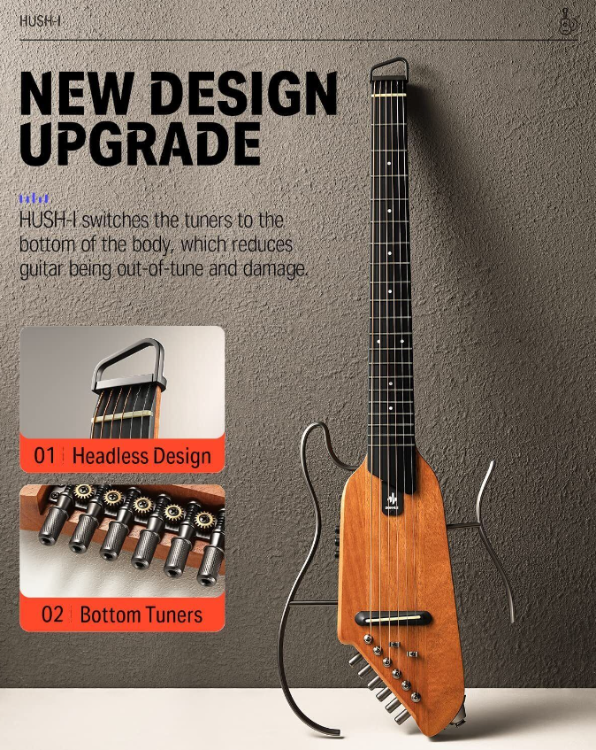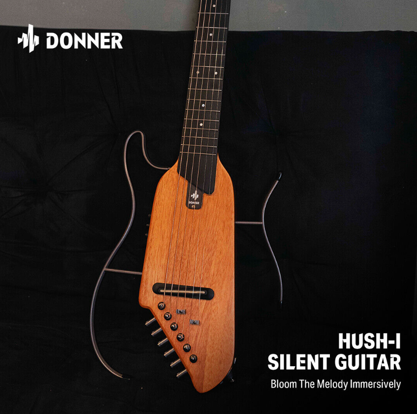 Donner HUSH Acoustic Electric Travel Guitar Headless Silent Pratice | Refurb