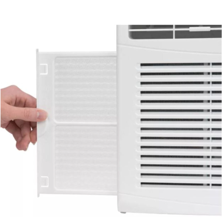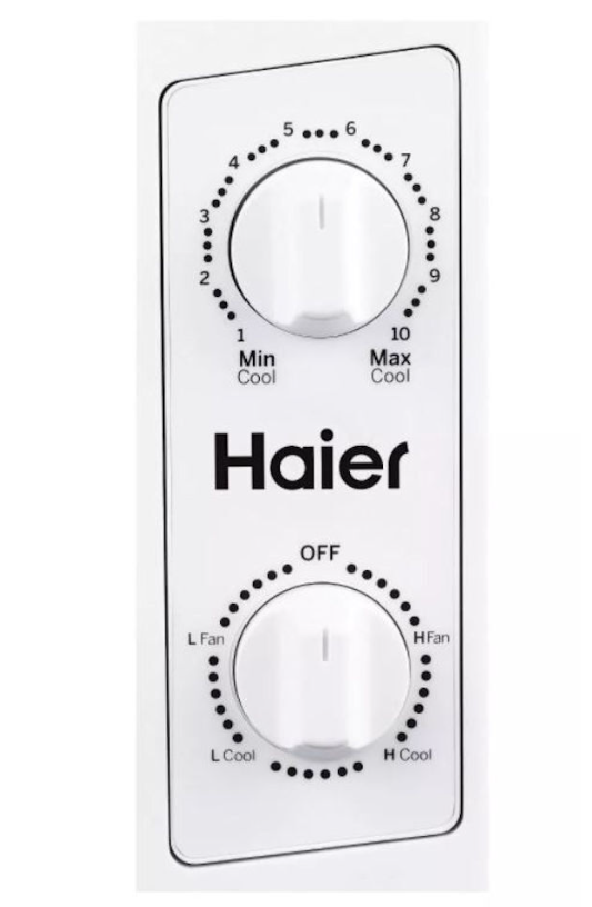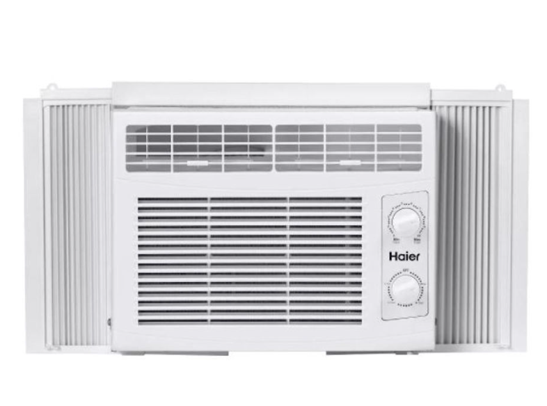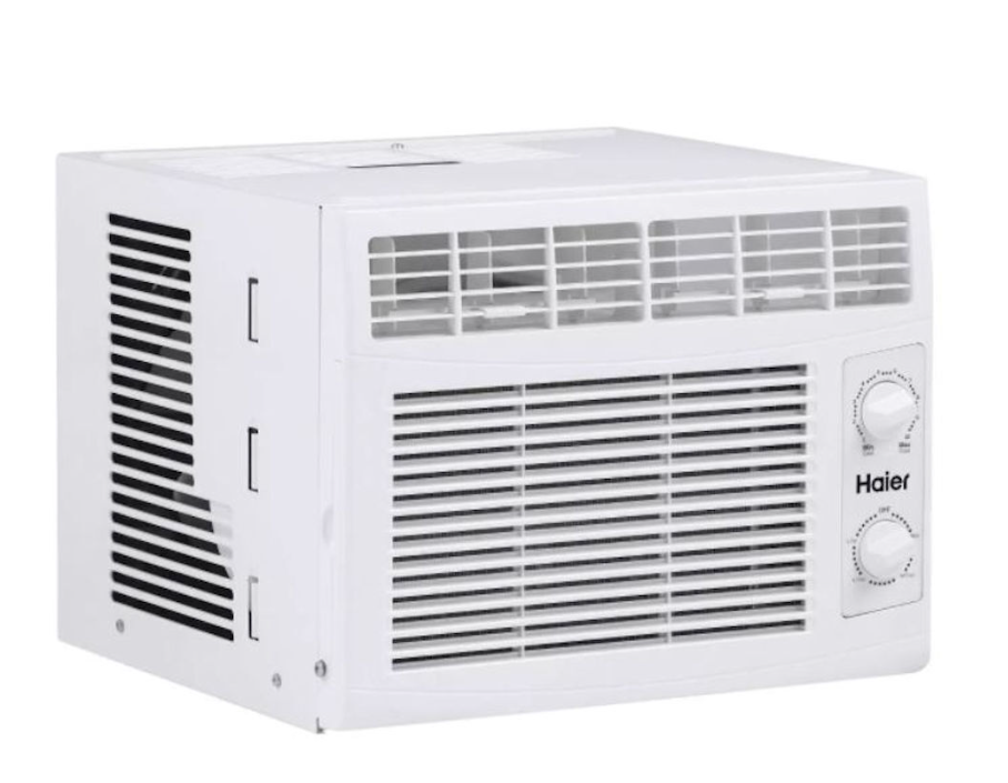 This Haier 5,050 BTU window air conditioner cools small rooms up to 150 sq. feet. Energy efficient cooling with 2 cooling and 2 fan speeds provide flexible and optimal home comfort. Adjust temperature to your needs with the mechanical thermostat. This AC installs easily in a double hung window with included EZ Mount window kit and fixed chassis. Additional features like a removable, washable filter make maintenance a breeze.