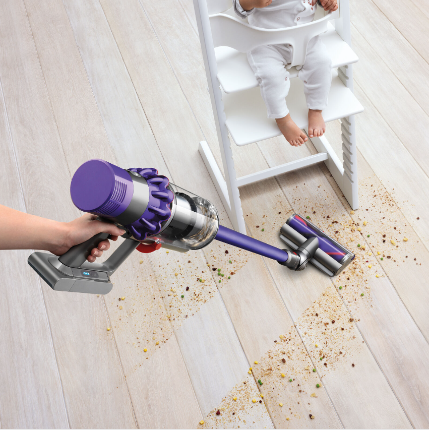 The V10 Animal + has the most powerful suction of any cord-free vacuum. Tested to ASTM F558, against cord-free stick market. Up to 60 minutes' run time when using a non-motorized tool. Lightweight and versatile, to clean right through the home. Instant-release trigger means battery power is only used while it’s cleaning. Requires charging for 3.5 hours minimum before first use. Torque drive cleaner head – our most powerful yet. Up to 20 minutes of fade-free power (in Suction mode II). Drives stiff nylon bristles into carpets to capture deep-down dirt. Powered by the Dyson digital motor V10 and engineered to pick up ground-in dirt and fine dust from hard floors and carpets. Quickly transforms to a handheld vacuum, to clean all around your home and car. Hygienic 'point and shoot' bin emptying. Bin volume 0.2 gallons. 6 month warranty on parts & labor. Designed to deep clean homes with pets. The fully-sealed filtration system traps 99.97% of particles as small as 0.3 microns – expelling cleaner air.