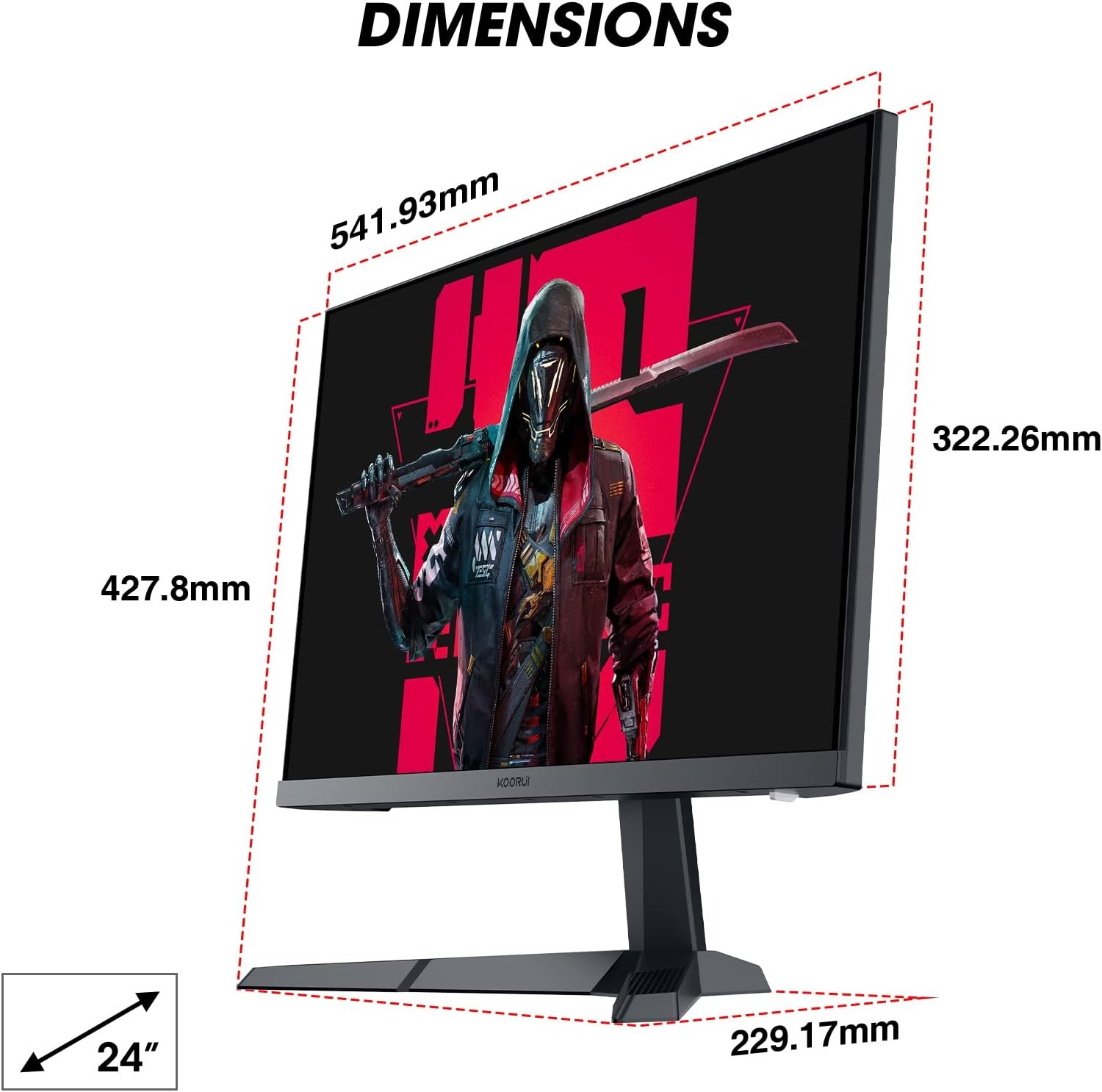 KOORUI 24" Gaming Monitor 165Hz, 1080p, 1ms, IPS, 99% sRGB Color Gamut, Adaptive Sync, Ultra Slim Frame, VESA Mountable (FHD 1920x1080, HDMI, DisplayPort) Black