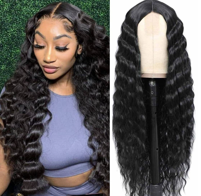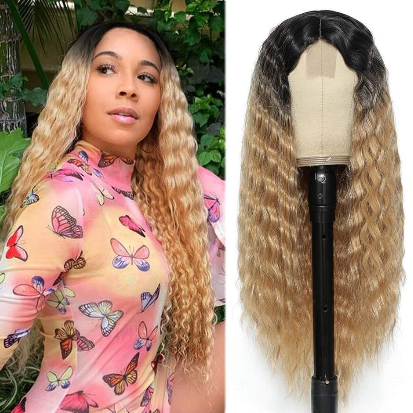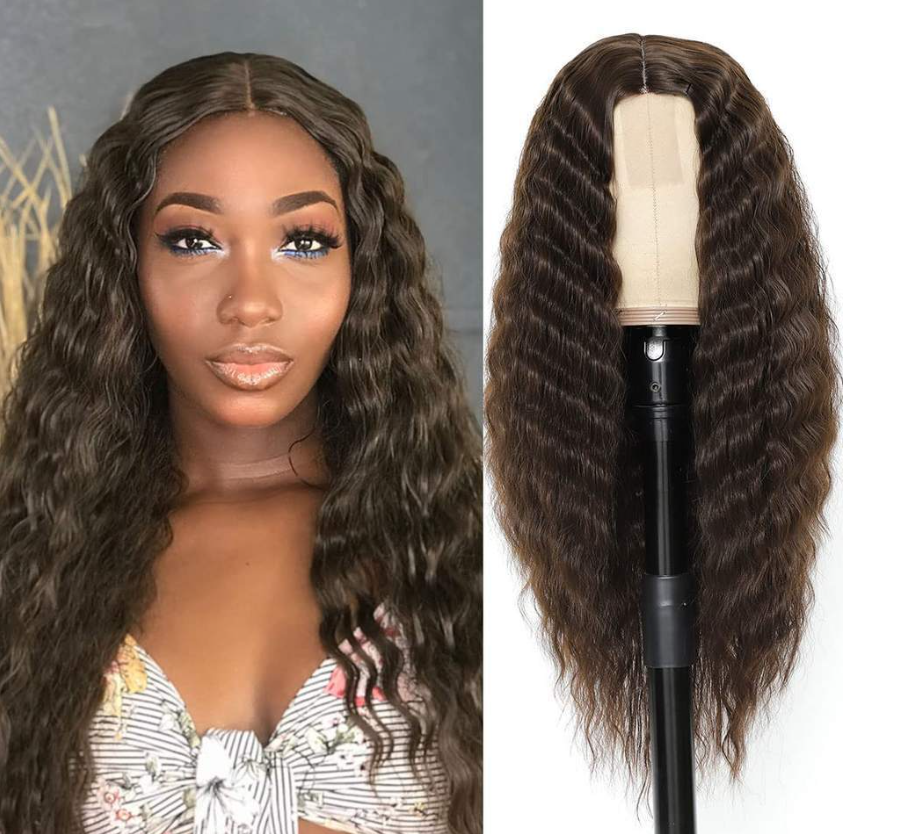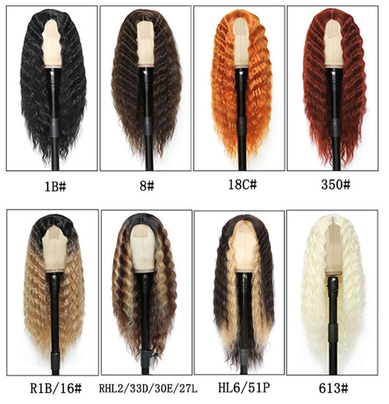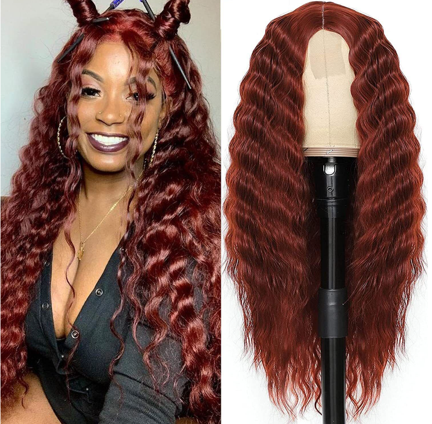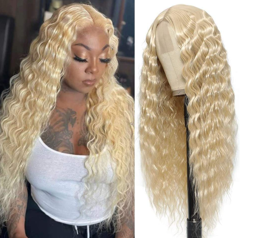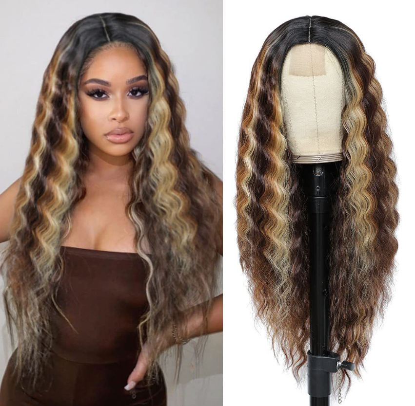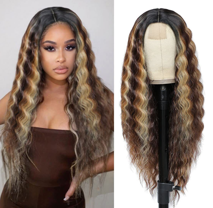Long Deep Wave Wig 28" Synthetic Curly Wigs 4" Fake Scalp Curly Lace Front Wigs