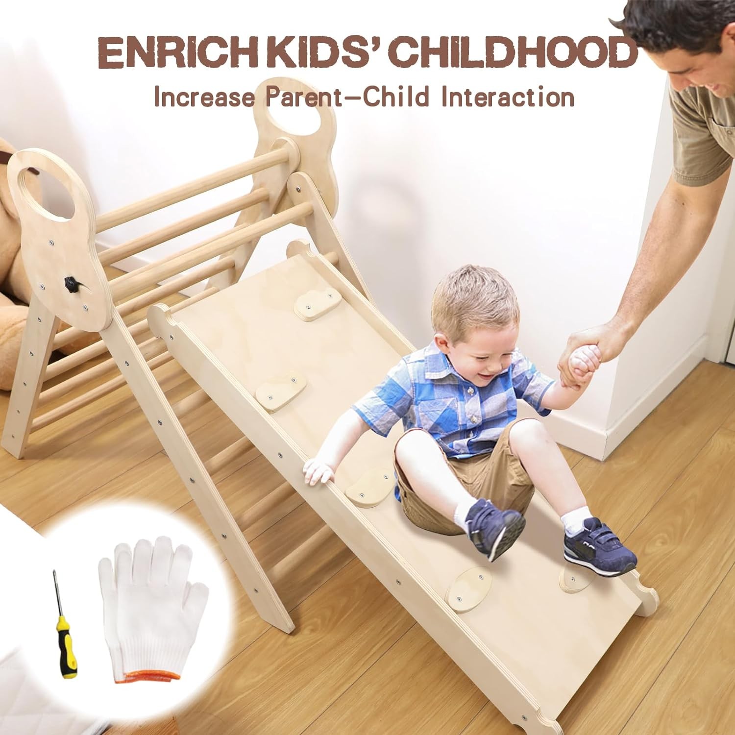 • 【Easy Assembly & Storage】This kids' climbing ladder comes with detailed instructions and necessary hardware, and we additionally prepare screwdrivers and gloves for you to assemble it easily and quickly. Foldable design is easy to store and takes up little space. Easy to move from room to room. It's a great toddler development toy, suitable for home, daycare, kid’s amusement park, kindergarten and so on.