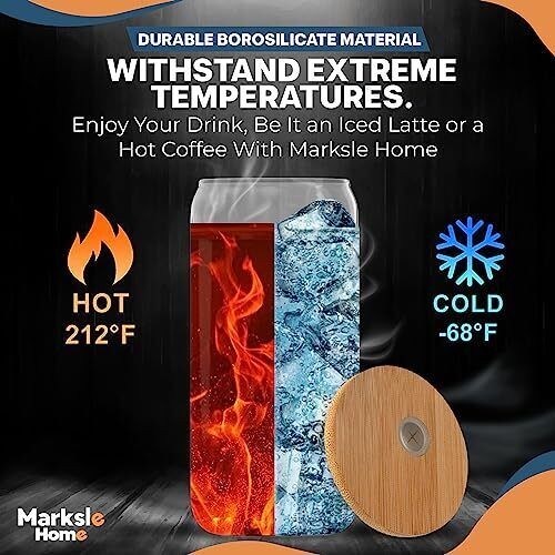 Marksle Home Glass Cups - Glass Cups With Lids And Straws - 16oz Iced Coffee ...