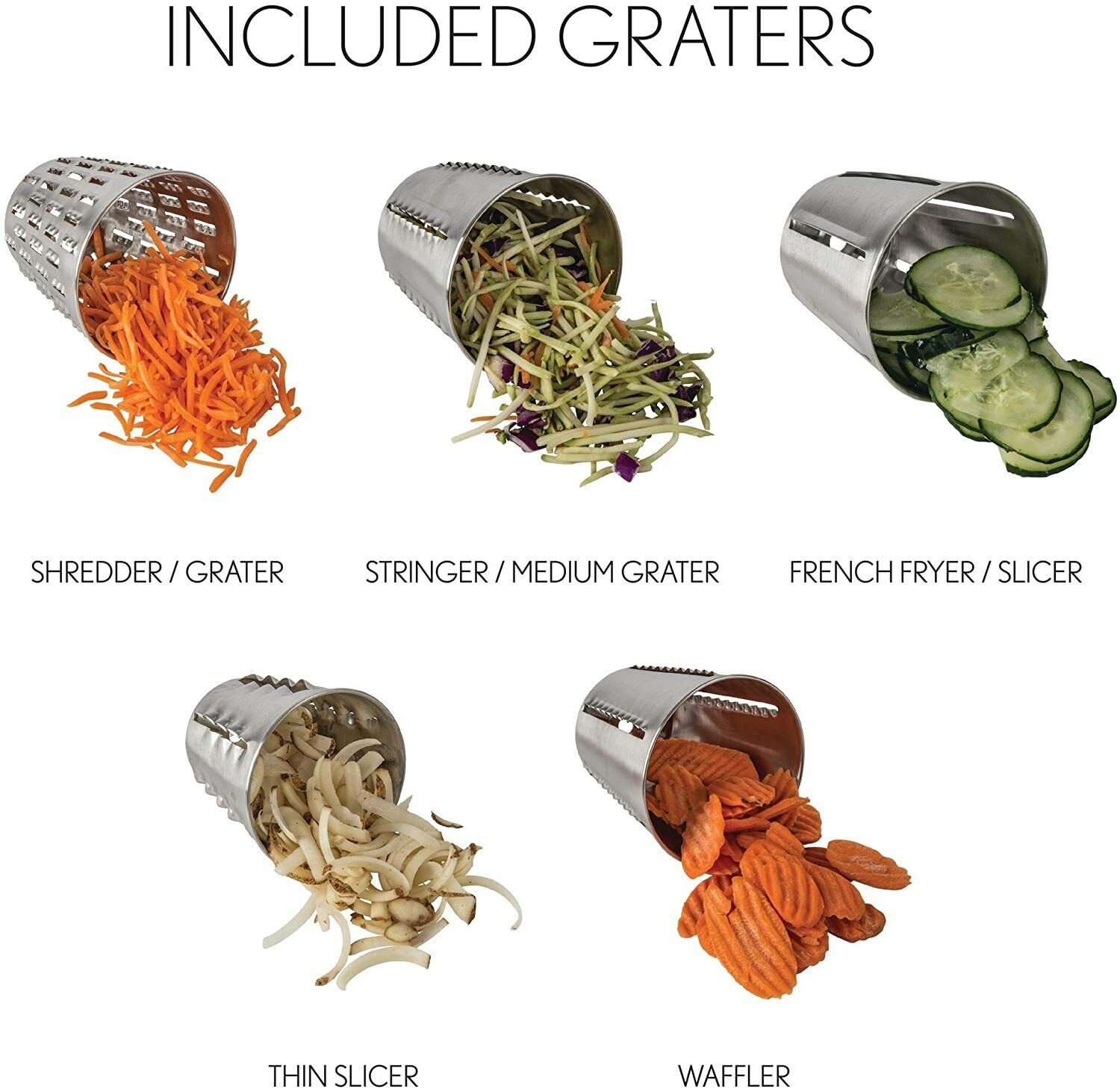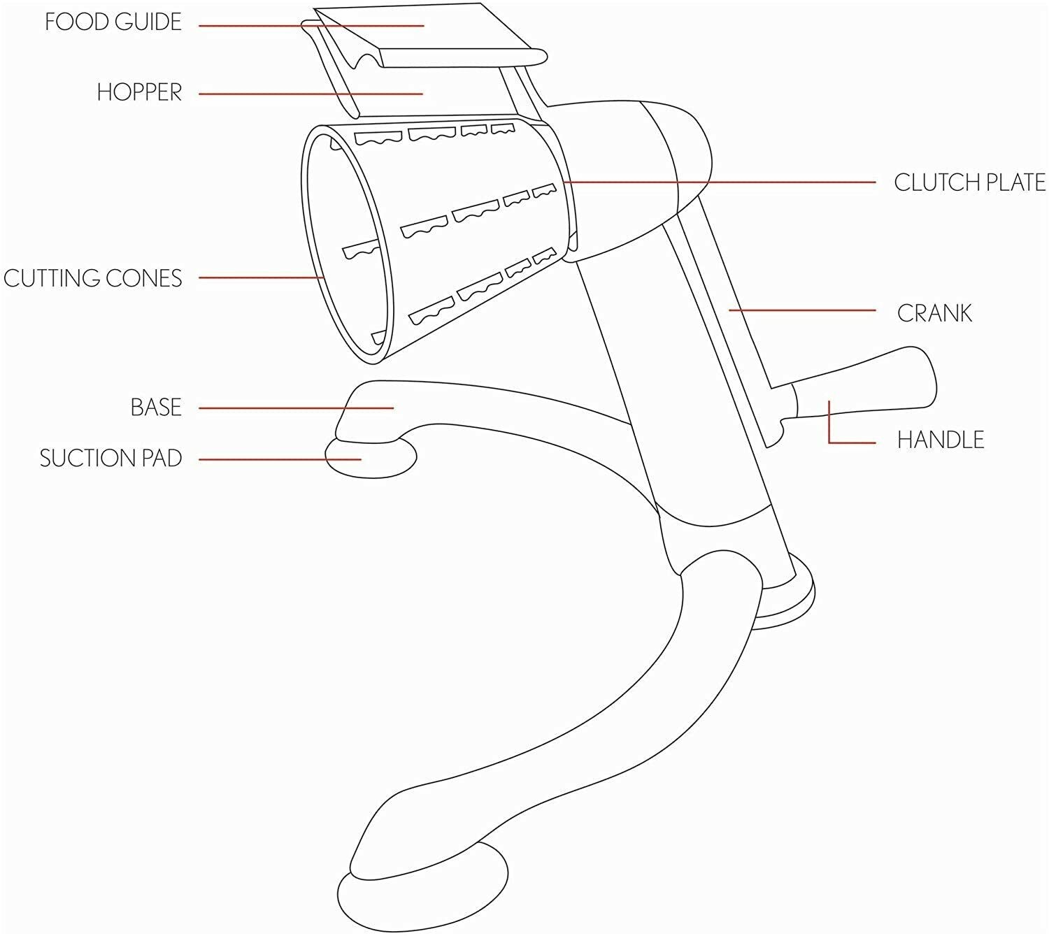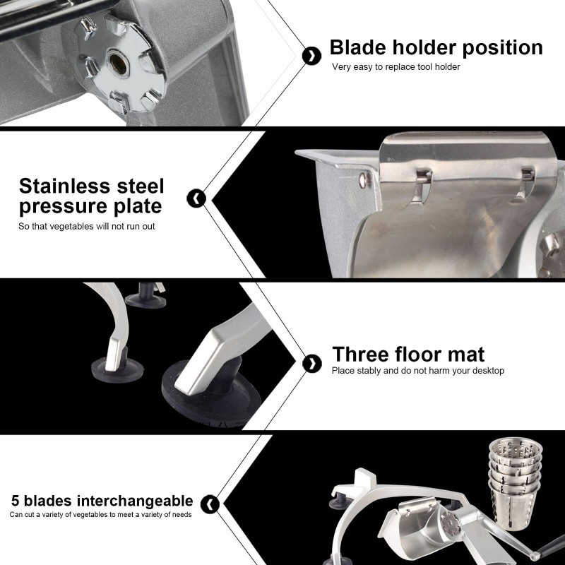 Feature: 1. Come with 5 different drums blades, which is great for cheese, vegetables, potatoes, nuts, onions, salad, pizza toppings and more.2. Adopt non‑slip foot pad design to securely hold the grater onto the surface preventing it from slipping or toppling over. Gives a more stabilized, and mess‑free kitchen working environment. 3. Made of stainless steel which is resistant to rust and corrosion, durable and sturdy. 4. The vegetable cutter parts can be taken apart easily, it's safe to be washed in the dishwasher. 5. When shaking the handle, the roller can rotate 360 degrees to cut food, which is efficient and labor‑saving. Specification: Condition: 100% Brand New Package List: 1 x Cutter Body 1 x Base 5 x Blade Note: 1. Please allow 1‑2cm error due to manual measurement. Thanks for your understanding. 2. Monitors are not calibrated same, item color displayed in photos may be showing slightly different from the real object. Please take the real one as standard. |
