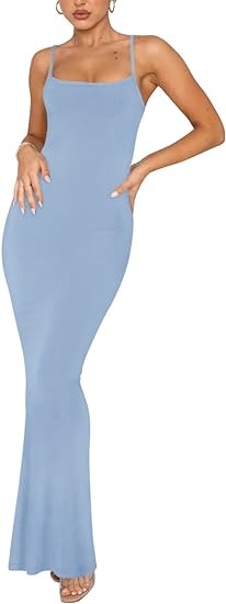REORIA Women's Sexy Lounge Slip Long Dress Elegant Sleeveless Backless Ribbed Bodycon Maxi Dresses