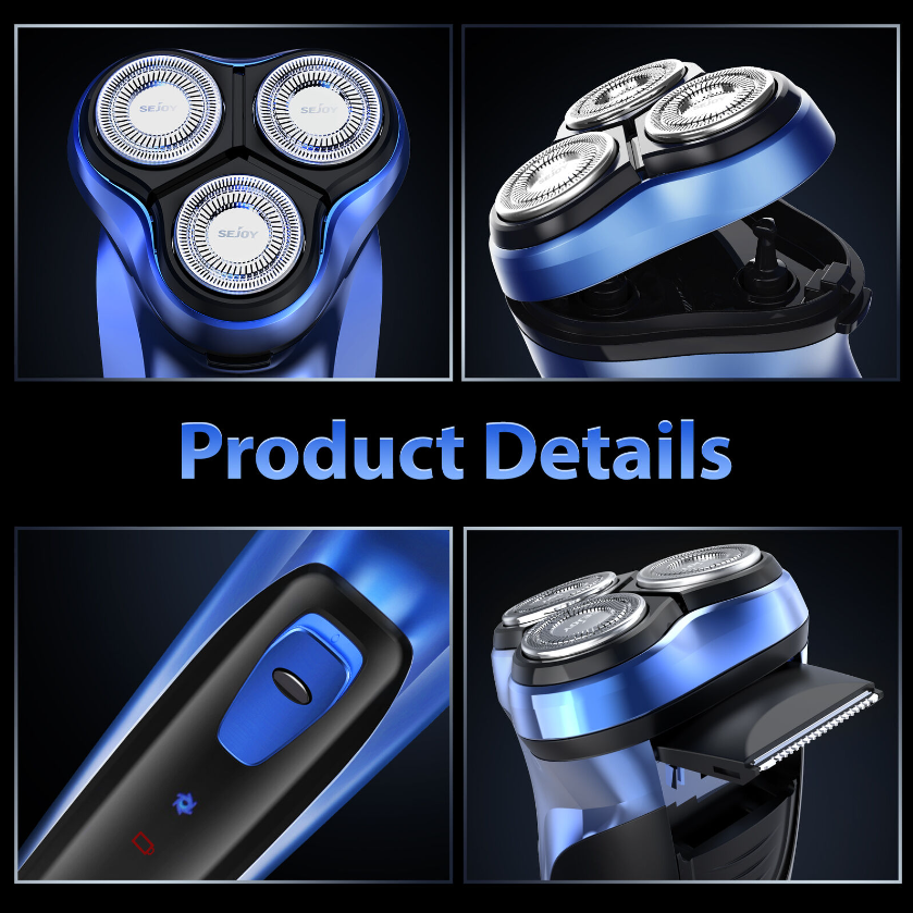 SEJOY Men Rechargeable Electric Shaver Pop-up Trimmer Rotary Razor Beard Shaving