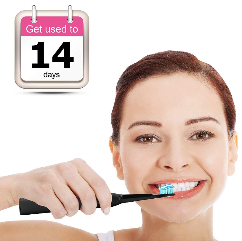 • POWERFUL CLEANING AS JUST GET OFF DENTIST'S CHAIR. This electric toothbrush with 40,000 micro-brush per minute. Remove up to 100% more plaques and stains, compared with a regular manual toothbrush. Enjoy clean and healthy teeth in 7 days and improve gum and oral health in 14 days. 5 YEARS LIFE DESIGN WITH 1 YEAR WARRANTY AND 180 DAYS NO HASSLE RETURN.