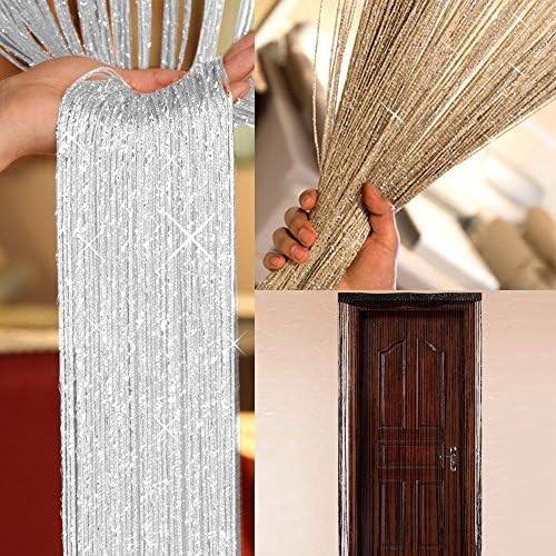 String Curtains Beaded Door Curtains Panel Divider ,Fly Screen for Door Wall and Window Decoration,200cm x 100 cm(200cm*100 cm,Silver)