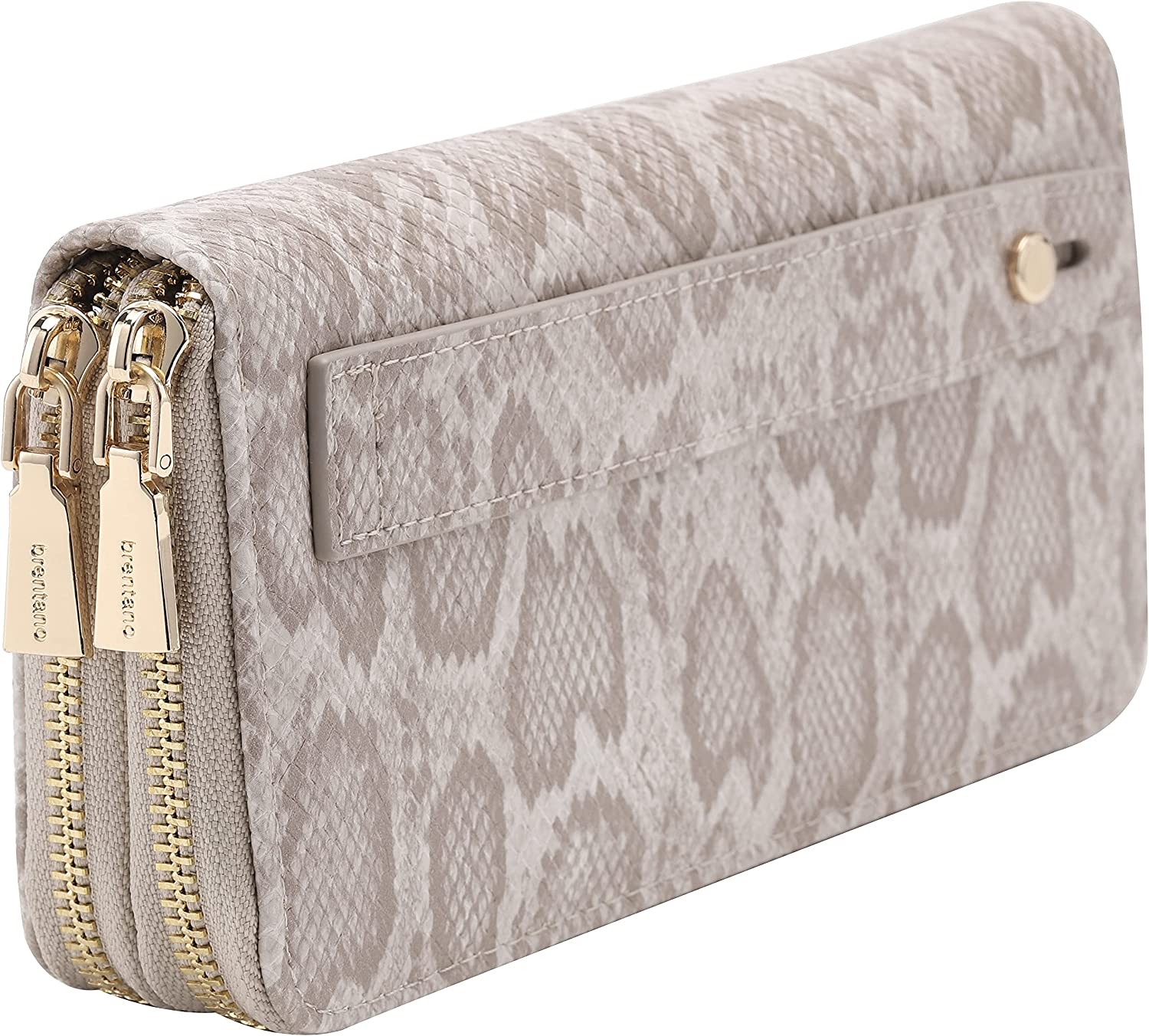 Vegan Leather Double Zipper Pocket Wallet with Grip Hand Strap (Chevron Embroide