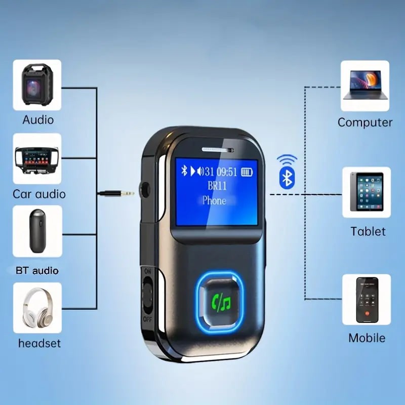 Wireless Receiver With LCD Screen, Portable AUX, 5.0 Adapter For Car, Wireless Audio Receiver For Home Stereo/Speaker/Wired Headphones