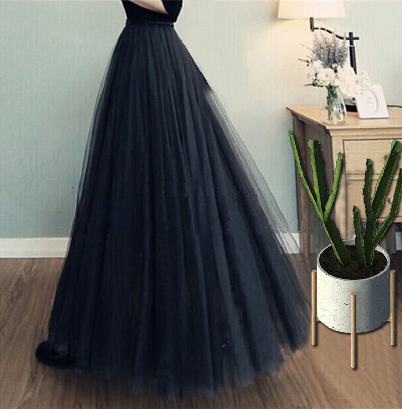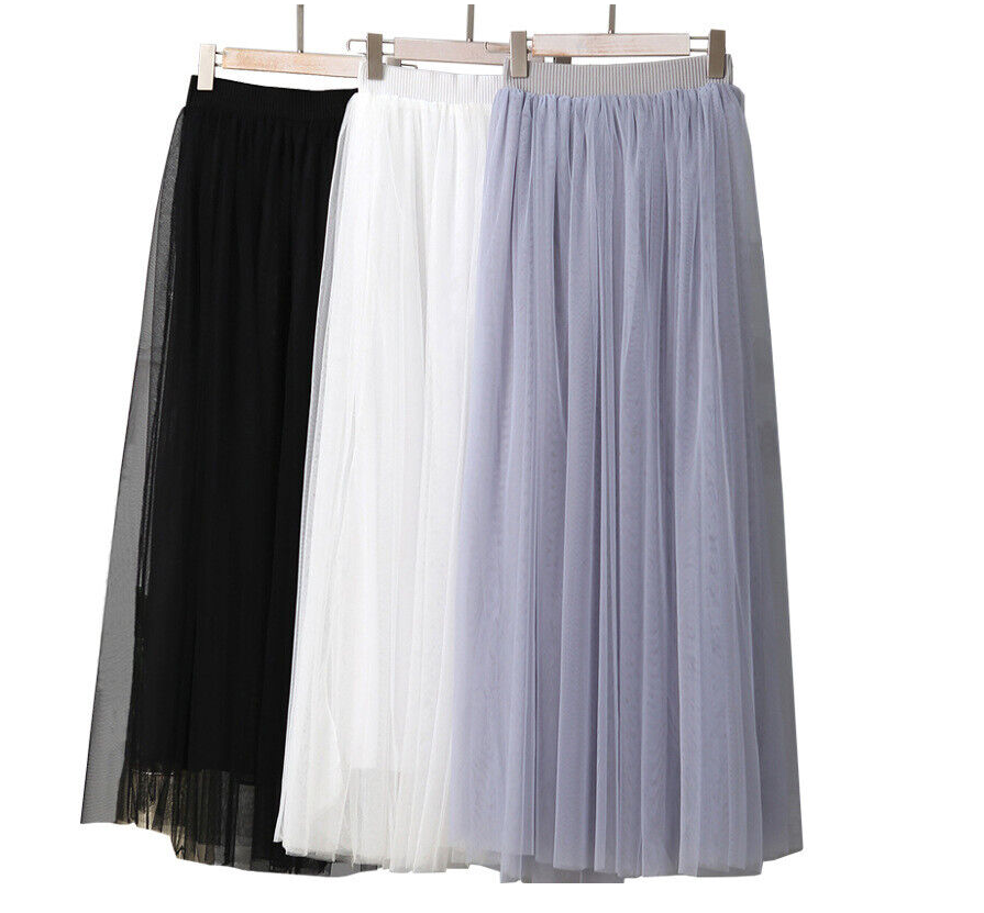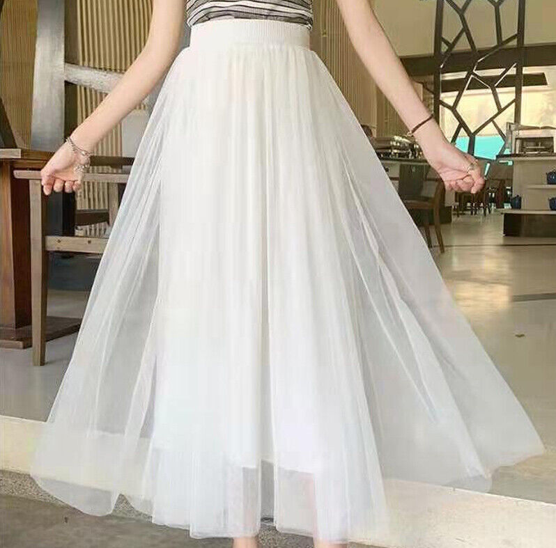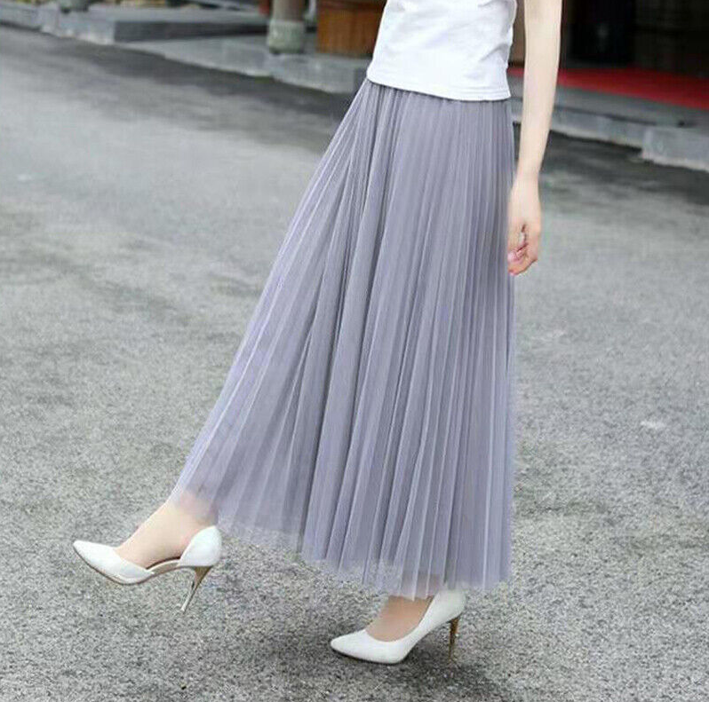 Women Tulle Skirt Elastic Pleated High Waist Layers Maxi Long Dress Fashion