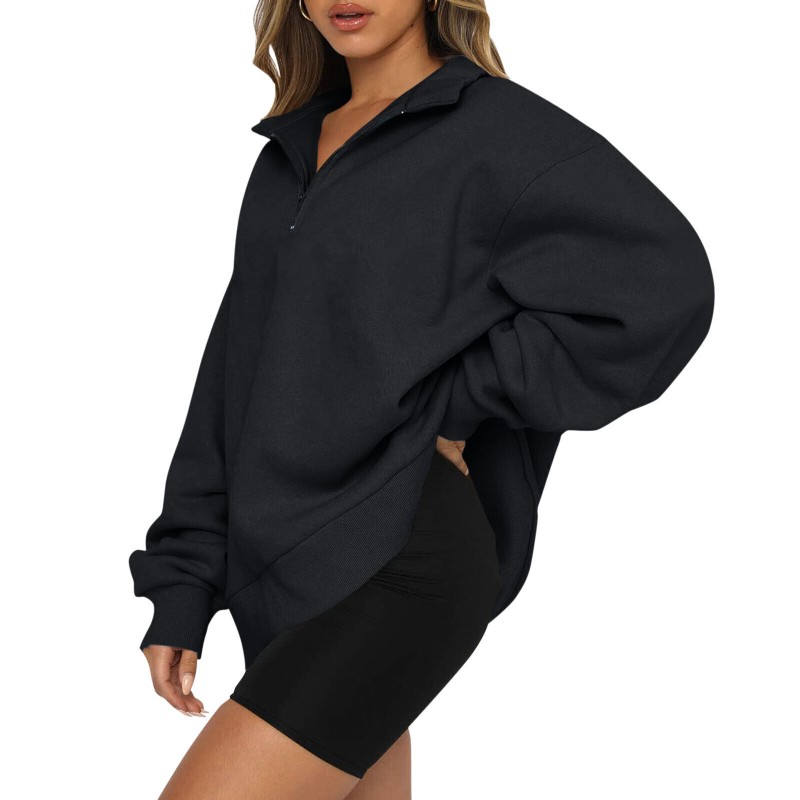 Womens Oversized Sweatshirt Half Zip Pullover Long Sleeve Hoodie Sweater Blouse