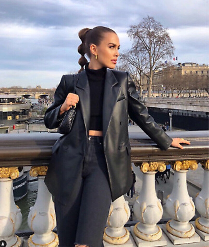 ZARA BLACK PADDED SHOULDER LAPEL COLLAR OVERSIZED MASCULINE FAUX LEATHER BLAZER