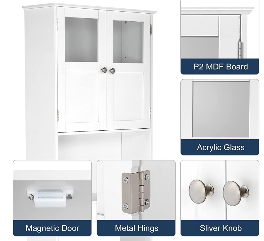 Zimtown Toilet Bathroom Cabinet Storage Space Saver, 8.66 In, White